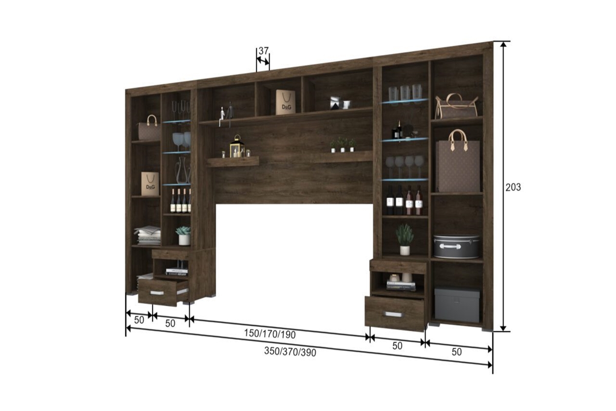 Rendelhető - 350/370/390cm széles x 52/37cm mély x 203cm magas