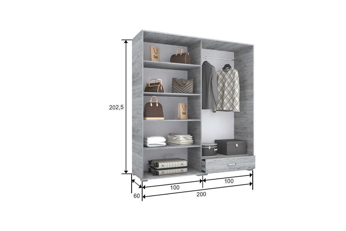 Magasság: 202.5cm, Szélesség: 200cm,Mélység: 60cm